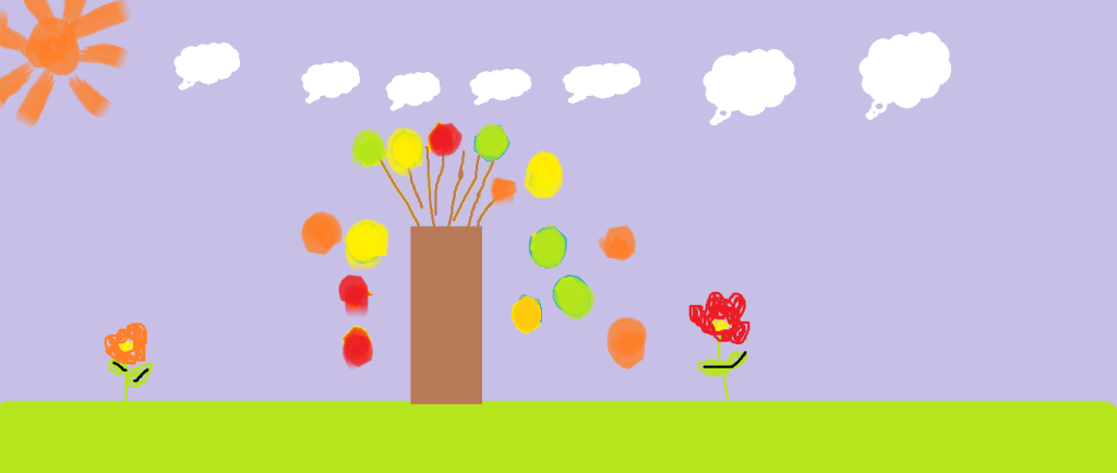 Իմ նկարի մեջ կա երկու ծաղիկ ,մեկ հատ ծառ որի տերևները թափվում են,երկու ամպ և արև։Աշնանը տերևա թափ է։Ես սիրում եմ աշուն։