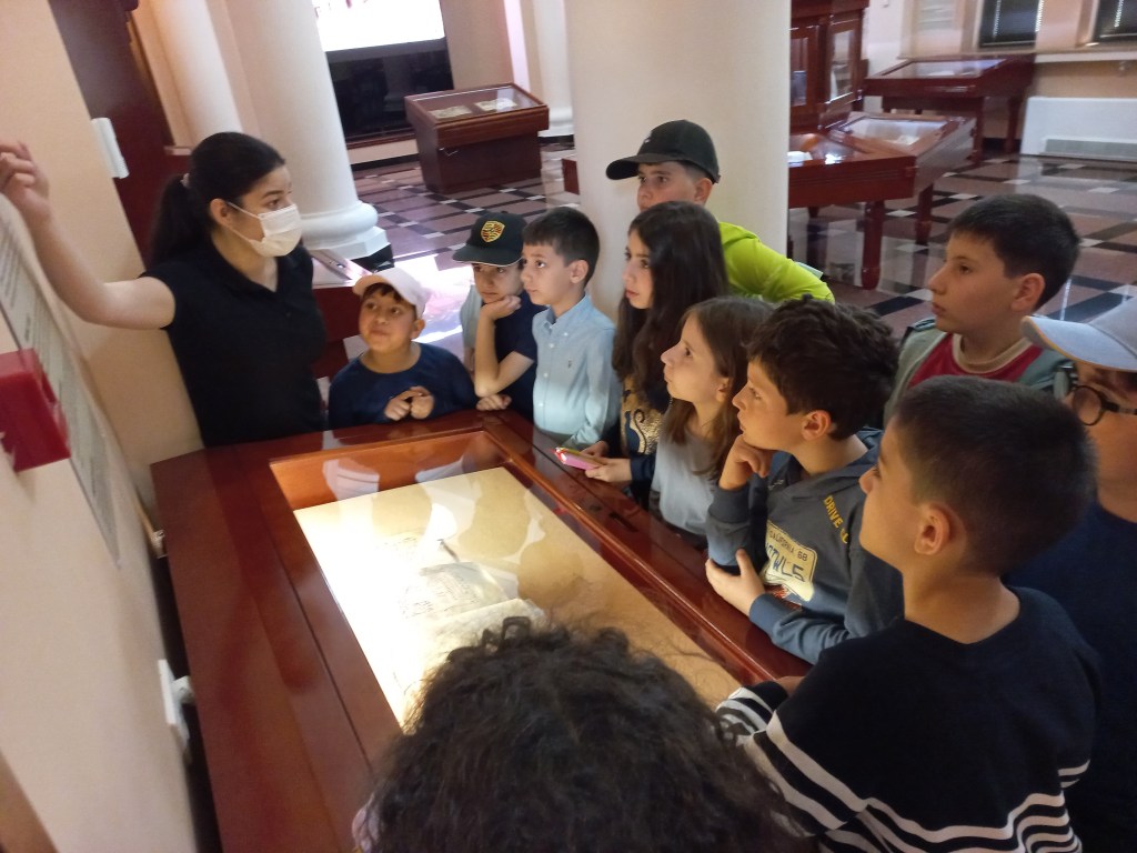 Մենք երեկ գնացել էինք մատենադարան: Դպրոցից շարժվեցինք ժամը 11:00: Երբ տեսա մատենադարանը, շատ տպավորվեցի. այն շատ գեղեցիկ էր և խորհրդավոր: Ընկերներիցս մեկը նույնիսկ գնեց հուշանվեր: Երբ մտանք մատենադարան, բաժանվեցինք երկու խմբի, որպեսզի աղմուկ չլներ և կարողանայինք լսել: Այնտեղ մեզ ուղեկցեցին և պատմեցին գրքերի մասին, տեսանք, թե նրանք ինչ գույներով էին գրել, տեսանք ամենամեծ և ամենափոքր գրքերը: Երբ դուրս եկանք, ընկեր Սոնան մեզ պատմեց հայտնի մարդկանց մասին, ում արձանները կանգնեցրած էին մատենադարանի մուտքի շուրջը: Հետո մենք ուղևորվեցինք դեպի դպրոց և գնացինք դպրոցի մոտի Բաղչանի այգին և մեր գեղեցիկ օր շարունակեցինք այնտեղ: