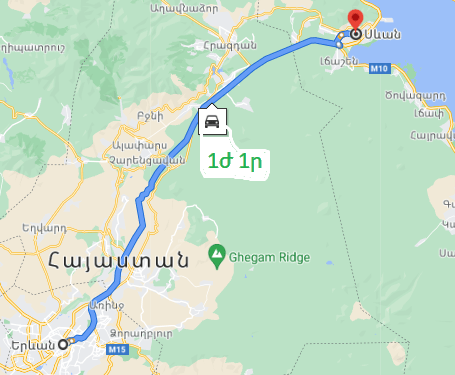 Այս նկրում դուք կտեսնեք Երևանից մինջև Սևան ճանապարհ և ժամը:
