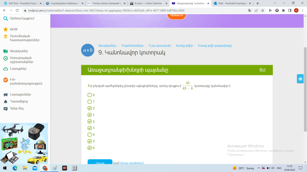 1. Առանձնացնել հոմանիշ բառերի 6 զույգ: