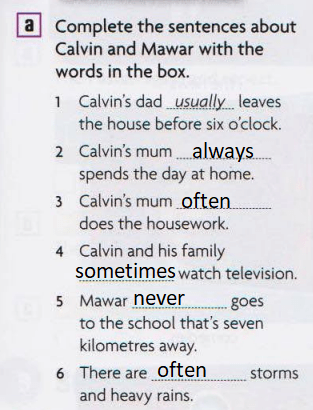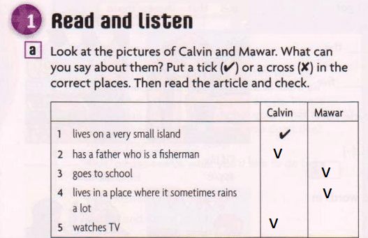 3. No, he doesn’t go to school because they haven’t got a school in their island.