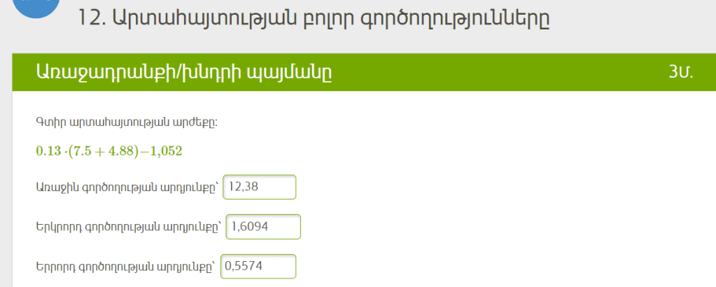 3. 10 կարկանդակ պատրաստելու համար մայրիկին անհրաժեշտ է կես ժամ ժամանակ, իսկ Մերիին`40 րոպե։ Գոռը պատրաստ է մեկ ժամում ուտել 10 կարկանդակ։ Մայրիկն ու Մերին անդադար պատրաստում են, իսկ Գոռը՝ անդադար ուտում։ Գործընթացի սկզբից քանի՞ րոպե անց սեղանին կմնա ուղիղ 50 հատ կարկանդակ:
