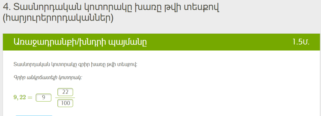 3 4/7, 17 15/18, 313 1/2, 22 1/5